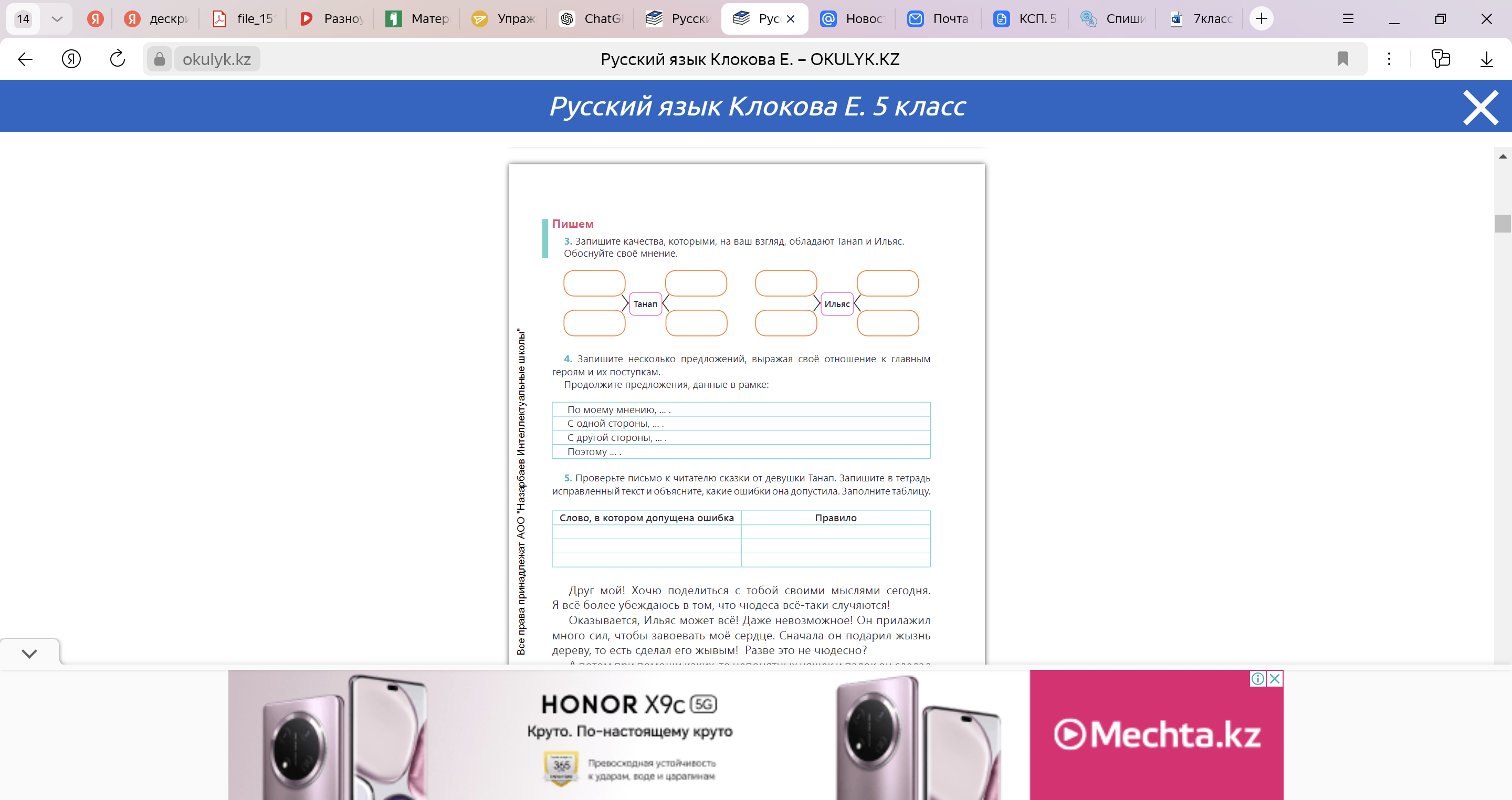 4. Оценка героев и их поступков. Задание 3. Запишите качества, которыми, на ваш взгляд, обладают Танап и Ильяс. Обоснуйте свое мнение.