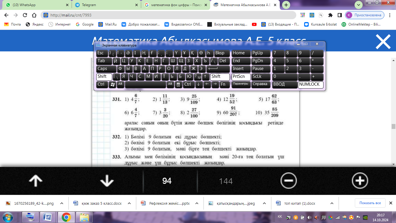 Ашық сабақ. 5 сынып, математика. Дұрыс және бұрыс бөлшектер