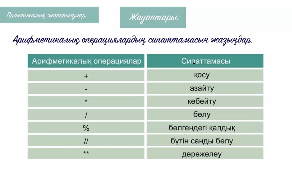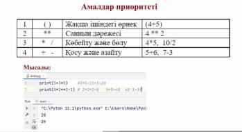 6.3.2.1 Python тіліндегі сызықтық алгоритмдерді жазу; |