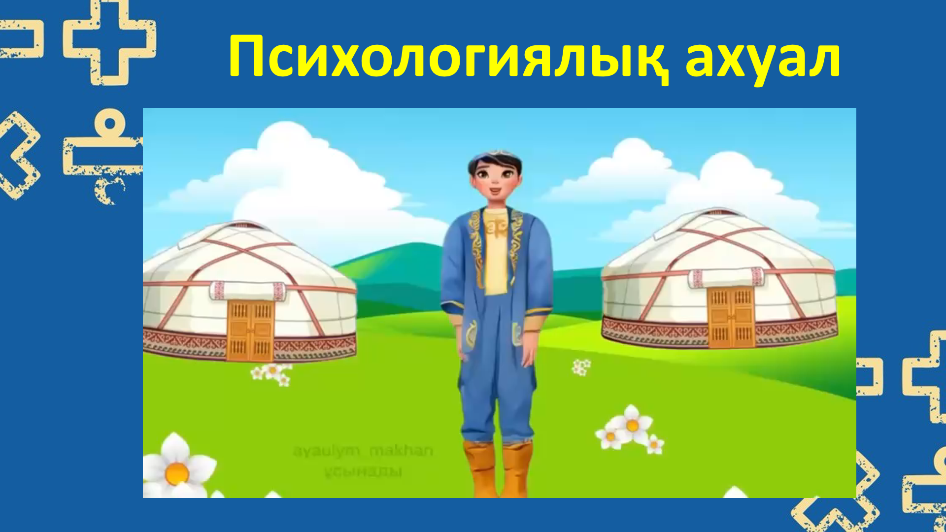 Ұйымдастыру кезеңі: Оқушылармен амандасу, түгендеу. Психологиялық ахуал орнату мақсатында оқушылар орындарынан тұрып, презентацияда қосылған видеодағы қазақ баламен бірге билейді