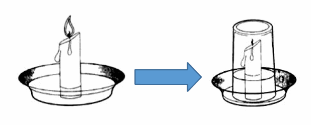 Бағалау критерийі: май шамның сөніп қалу себебін және су деңгейінің көтерілу себебін анықтайды. |