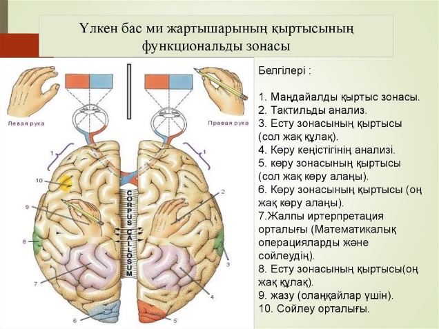Дескриптор: -Өз бойынан оң немесе сол жақтың жартышарларының басым екендігін ажыратды-2балл |