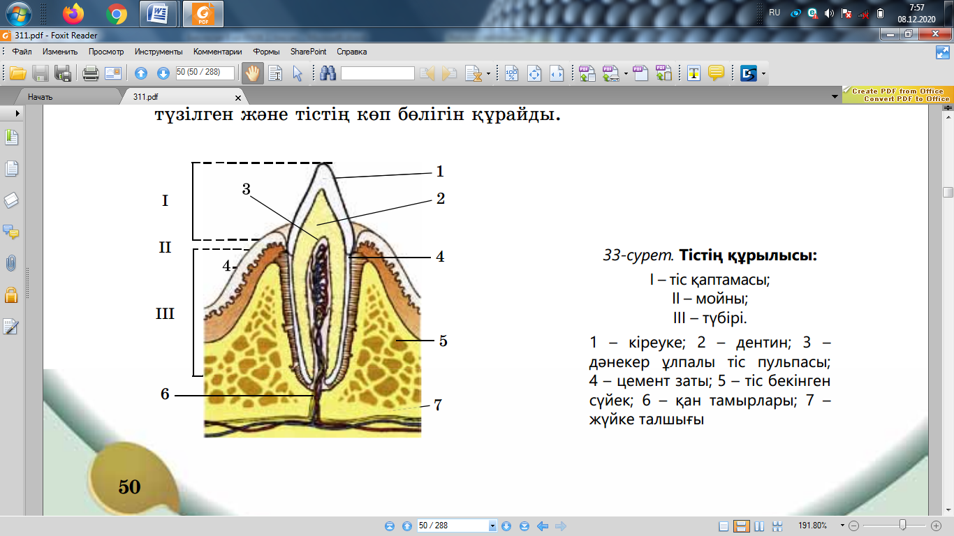 8.1.2.2 әртүрлі типті тістердіңқұрылысы мен қызметтері арасындағы байланысын және тісті күту ережелерін сипаттау 8.1.2.3 адамның ас қорыту жүйесінің құрылысы мен қызметтері арасындағы өзара байланысты түсіндіру |
