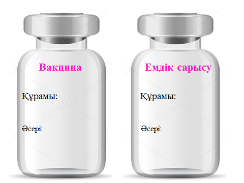 Диалогқа/жазылымға қажетті тіркестер: Вакцинаның маңызы … Жасанды иммунитеттің қалыптасу жолы … Жұқпалы аурулардан сақтанудағы шаралар … |
