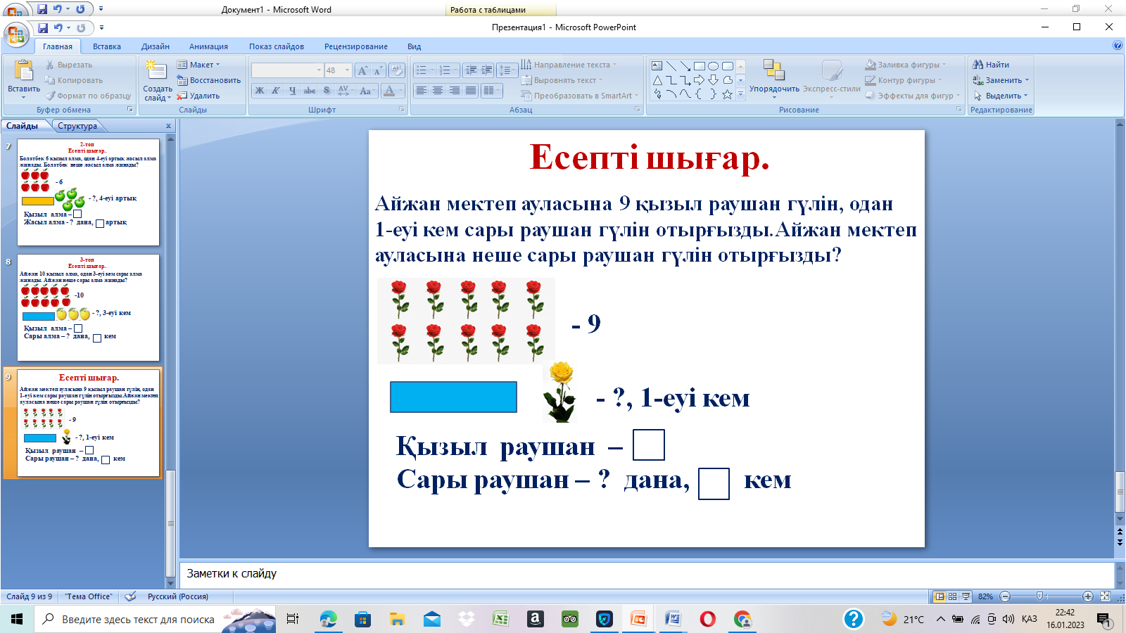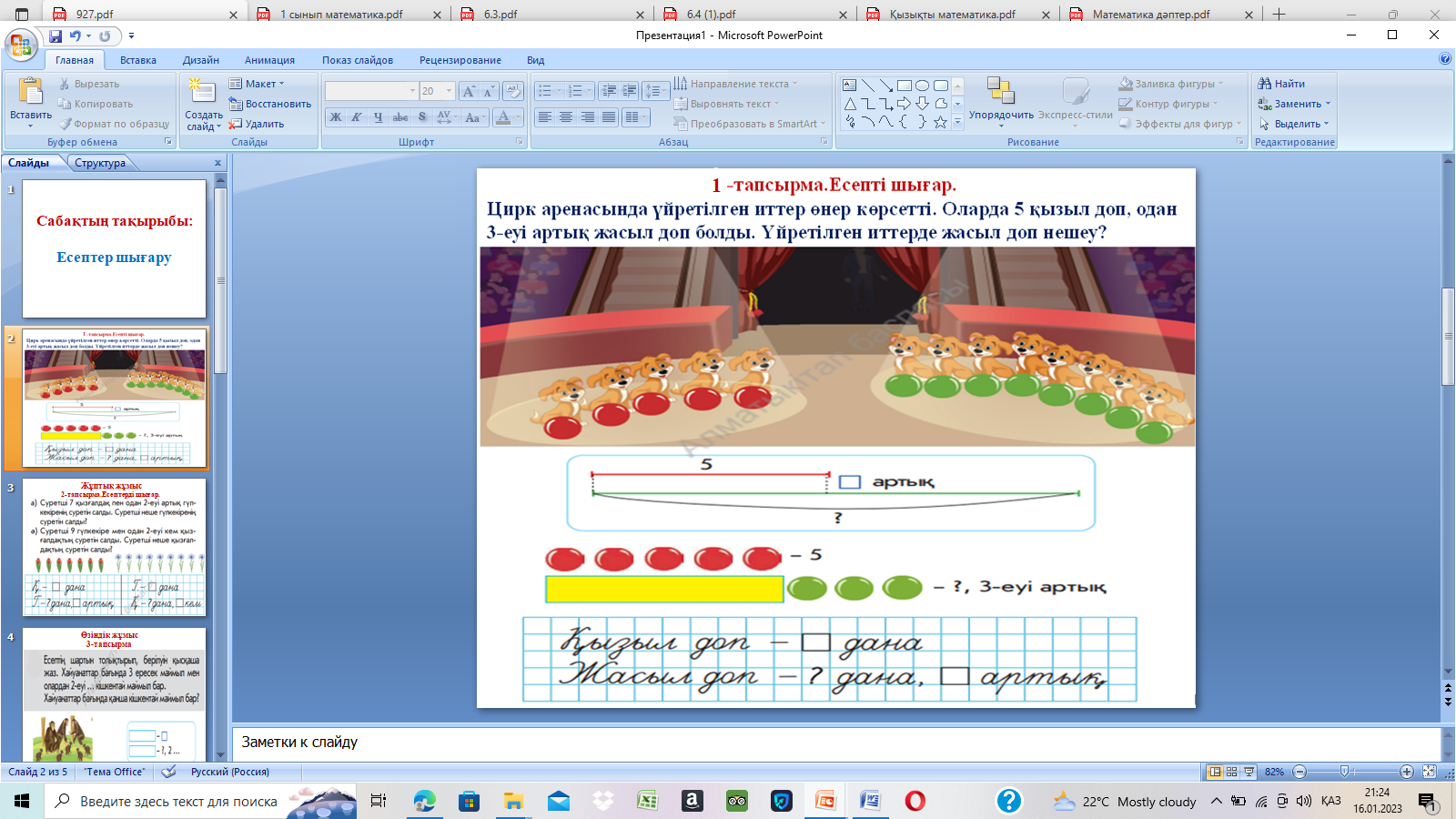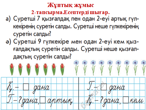 математика 1 сынып ашық сабақ тақырыбы: Есептер шығару