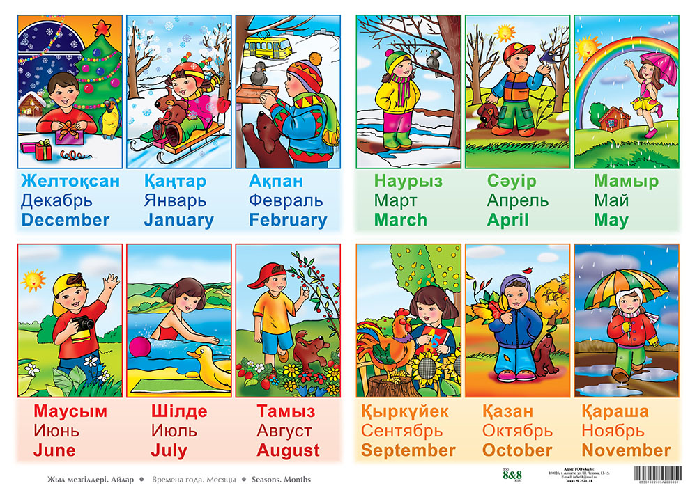Бір жылда төрт мезгіл бар. Әр мезгілде үш ай бар. Ай атауларын үш тілде атап айту: Айтылым: Үш тілдік мақсат.