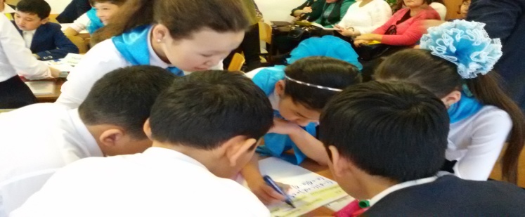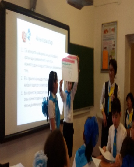 Жарайсыңдар, бәрекелді сөздеріиен қошеметтеу Сұрақтарға толық жауап берген топ оқушыларын мадақтау. |