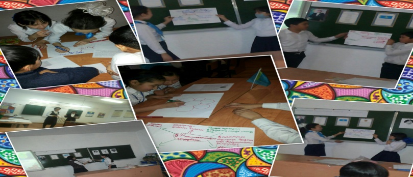 Оқушылар сабақтың мақсатымен танысып, тапсырмаларды орындауға кіріседі. Оқушылар осы станция тапсырмасын топ болып орындайды. Оқушылар топ болып 3 мысал құрастырады. Көрші топ шығарады, сосын мысал құрастырған топ тексереді. Топтар оқулықтан есептер шығарады. Жеке жұмыс жасайды. әр оқушы өзінің шамасы келетін тапсырманы таңдайды. Мына таблицада тігінен есептің тапсырмалары берілген, ал көлденеңінен жауаптары берілген. Тапсырма мен дұрыс жауап сәйкес келетін клеткадағы әріптерді тізіп жазса, білім туралы жақсы ой шығады. Үш қатар үш сөзін табады. «Білім- басты құрал» Оқушылар тапсырмаларды орындап, сөздерді табады. Осылайша барлық есептің дұрыс жауаптары орналасса, плакаттағы сөйлем дұрыс құрастырылып шығады.Қате кесе, сол жердің әріптері сәйкес келмейді. «2030 жылға қарай Қазақстан орта Азия барысына айналады» Н.Ә.Назарбаев. Топ басшысының топ мүшелерін бағалауы 7-8ұпай-«5» 5-6 ұпай-«4» 4-3 ұпай-«3» |