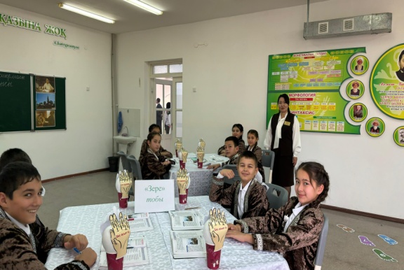 Оқушылар назарын сабаққа аудару. Оқушылар бір-біріне жылы лебіздерін білдіреді. Оқушылар өлең үзінділеріне байланысты өз пікірлерін білдіреді, бейнероликті тыңдап, бейнероликке байланысты өз ойларын айтады. Дескриптор: -жырды мәнерлеп айтады; -жатқа айтады; -дауыс ырғағы жоғары; Желсіз түнде жарық-ай, Сәулесі суда дірілдеп. Ауылдың жаны терең сай, Тасыған өзен гүрілдеп. Көзімнің қарасы, Көңлімнің санасы. Бітпейді іштегі, Ғашықтық жарасы. Балалар бір бөліктен екі бөлікті бөліп оқиды. Сабақтың тақырыбы мен мақсатымен танысады. Жаңа сөздерді оқиды. Балалар оқиды. Wordwall платформасында дайындалған сұраққа жауап береді. 1-талқылаушы 1.Бес асыл іспен бес дұшпан жайлы мәселе көтерген.Идеясы-жастардыңғылым мен білімге ұмтылу. 2-белгілеуші 3 сұрақ құрастырады. 3-байланыстырушы Бүгінгі заман мен қазіргі заманды байланыстырады. 4-сәйкестендіруші Берілген мақал мәтелдерді сәйкестендіреді. 5-қортындылаушы Өлеңде білім мен ғылымның құндылығын насихаттайды. Балаларға сөздер тарқатылады,сол сөздерді «Таза тақта» әдісі бойынша жазады. Жазылған дәптер экранда көрсетіледі де балалар сол сөздерден дұрыс сөйлем шығарып дәптерлеріне жазады. Сергіту