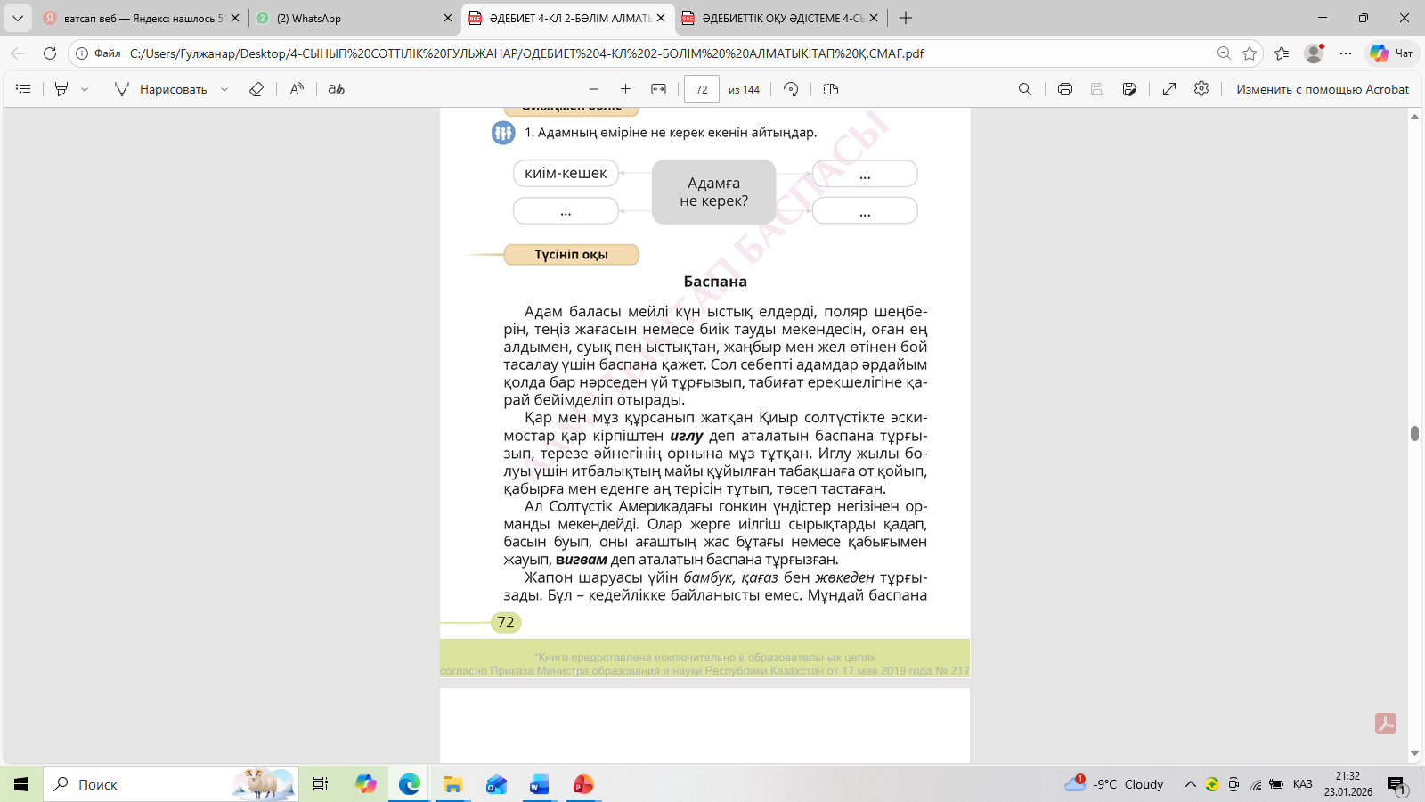№57 сабақ. Адамның табиғатқа бейімделуі.Баспана |