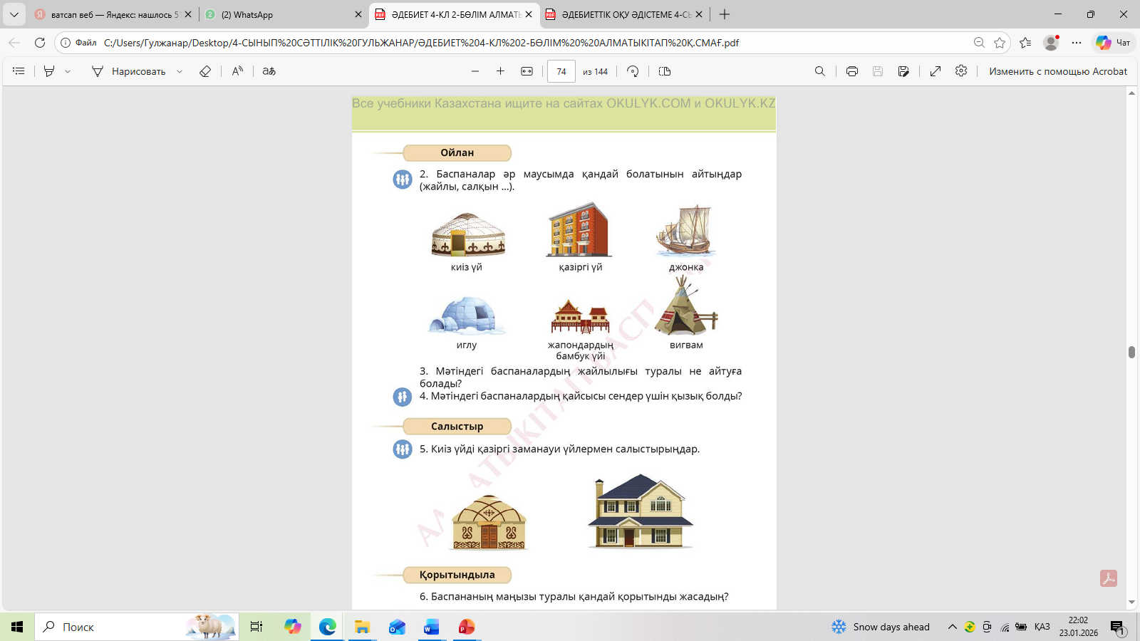Киіз үйді қазіргі заманауи үйлермен салыстырады -1б