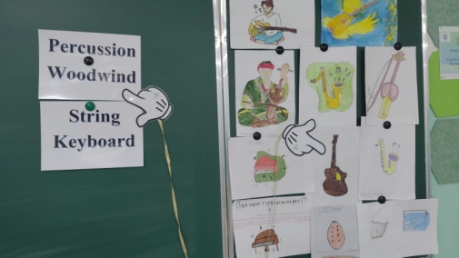 - Guys, why do you think I gave you this assignment? - That's right, because today we're going to explore the topic of Musical Instruments. Present musical instruments. Present the new vocabulary. - Today we are going to speak about music and musical instruments. Look at the screen, please. - Listen and Repeat the new words. And glue this words in your notebookes.