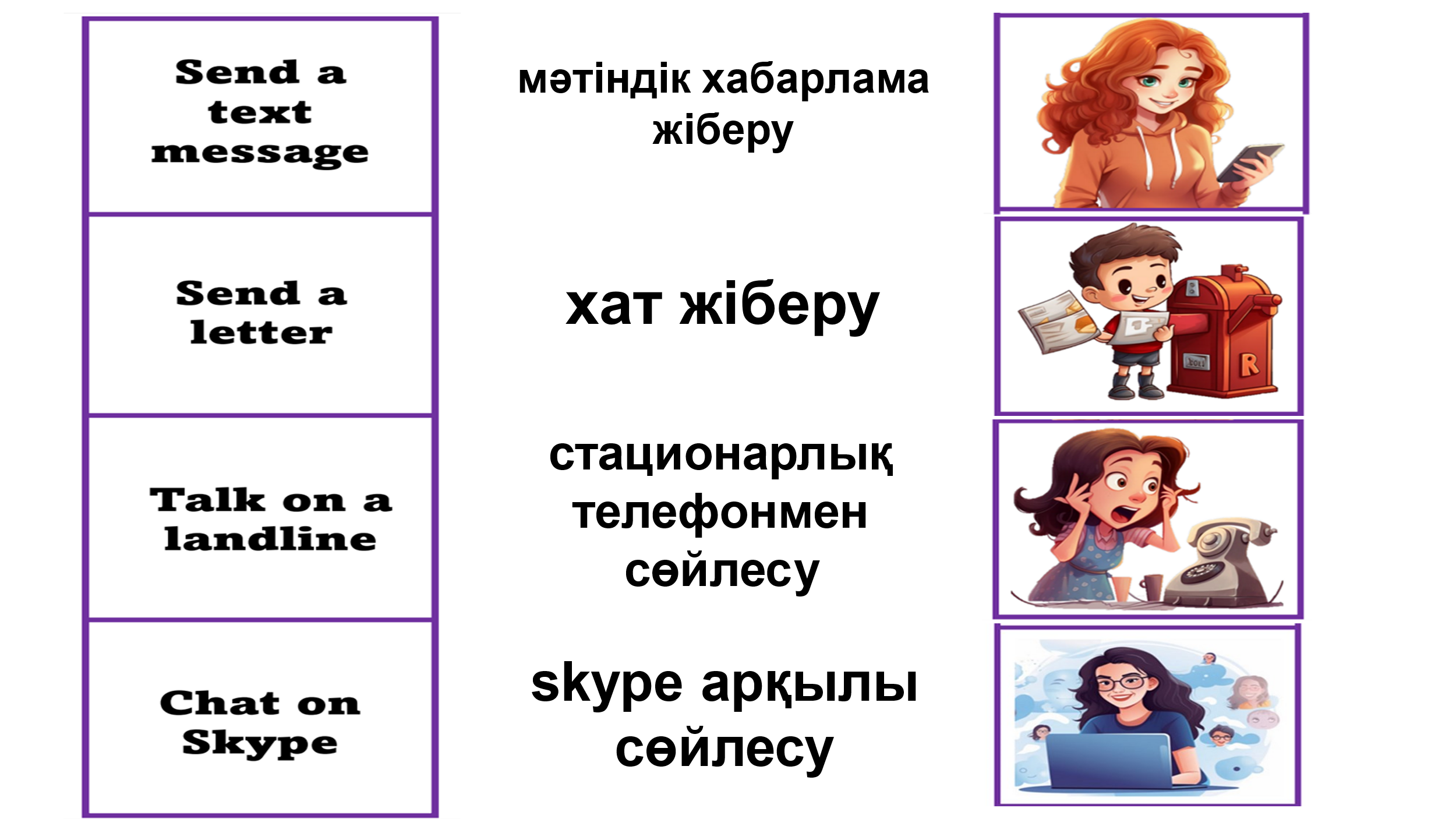 - Look at the pictures. -What do you see here? -What do you think about the theme of our lesson? - OK. You are right. Today we shall have a talk about different means of communication and find out what mean of communication do you prefer.
