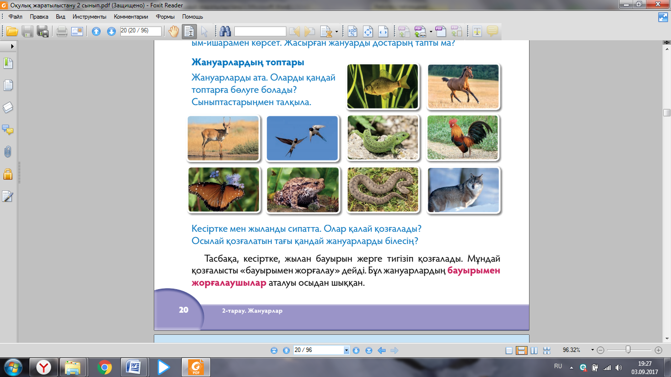 -жануарларды атайды; -жануарлардың класын анықтап жазады. |