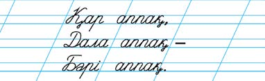 Дескриптор: Көркем жазу емлесін сақтап жазады Жаңылтпашты көркем жазады.
