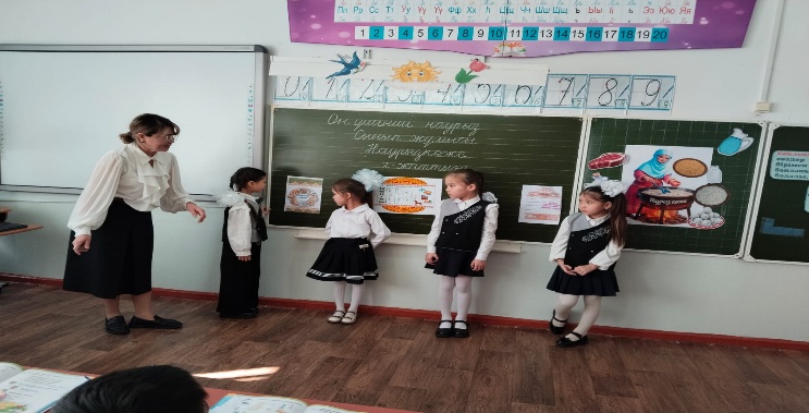 Мұғалім оқушылардың ынтасын көтеру мақсатында «Біз қандаймыз , қандаймыз » әдісі атты психологиялық ахуалымен бастады.Оқушылар бір-біріне сәттілік тілей отырып,өздеріне жақсы көңіл- күй сыйлады.Мұғалім тарапынан мақтау,мадақтау жүргізіліп отырды.
