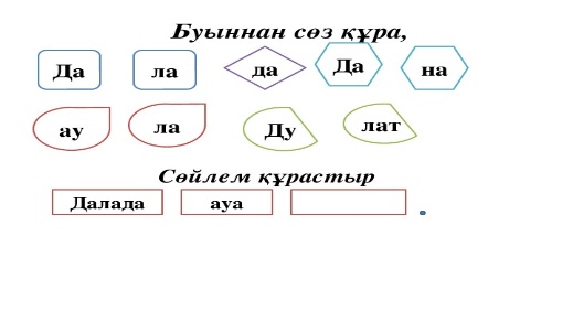 Мақсаты: Мұғалімнің қолдауымен мәтіннің, сюжетті суреттің мазмұны бойынша сұрақ қою, сұраққа жауап береді, жазу жолын, жоларалықты, жолдың жоғары және төмен сызықтарын сақтап, әріп элементтерін, әріптердің бір-бірімен байланысын көркем жазу талаптарына сай жазады.