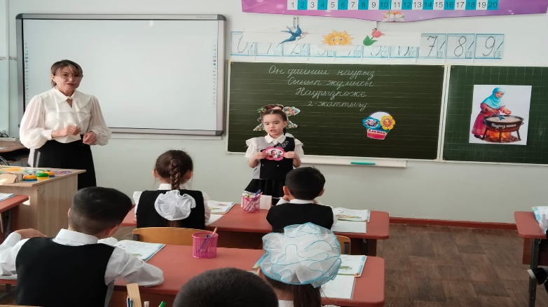 «Әжейдің наурызкөжесі »әдісі арқылы оқушылар жеті түрлі дәмді қазанға салады.