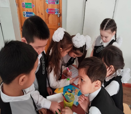 Оқушылар топтық жұмысты қызыға орындайды.