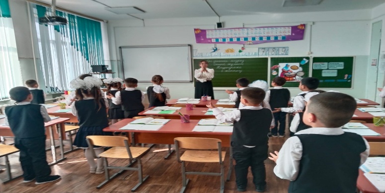 Сабақтың басы: Мұғалім оқушылармен амандасып, назарын сабаққа аударды.