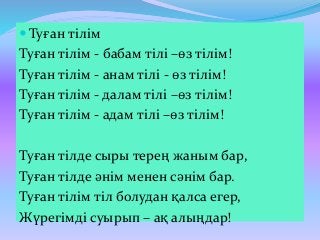 Аудиожазба «Ана тілім- қазақ тілі» әні