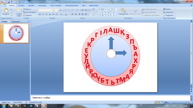 1)Әр топтан оқушылар шығып орындыққа отырып, қойылған сұрақтарға жауап береді. 2)Оқушылармұғалімменбірге бойынша жұмысжасайды.Флипчарттағы сағаттағы әріптерді біреу тастап оқиды.