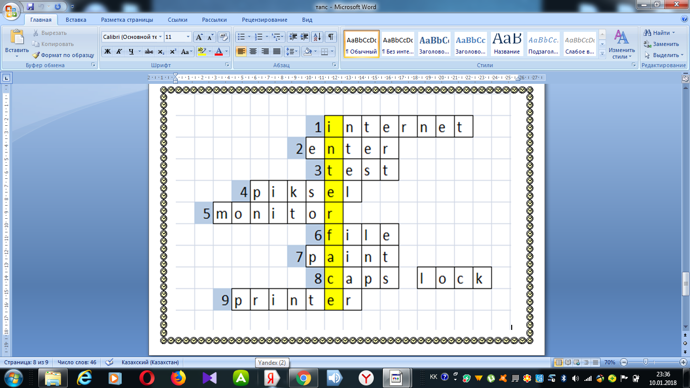Жылдамдыққа топпен сөзжұмбақ шешу. Флипчарт. |