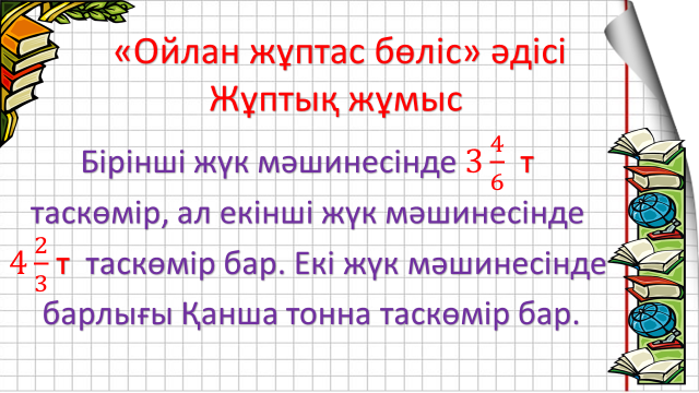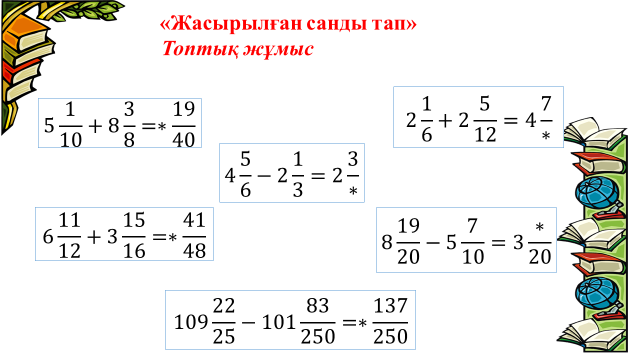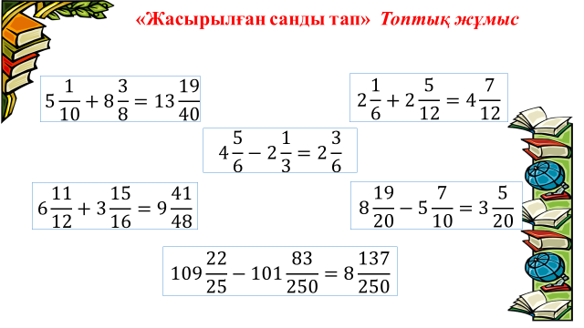 Сабақтың тақырыбы: Бөлімдері әртүрлі аралас сандарды қосу және азайту.