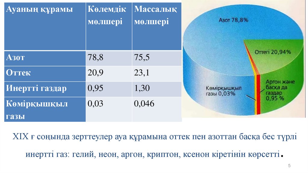 Ауаның құрамында қанша азот, қанша оттек және инертті газдар бар?