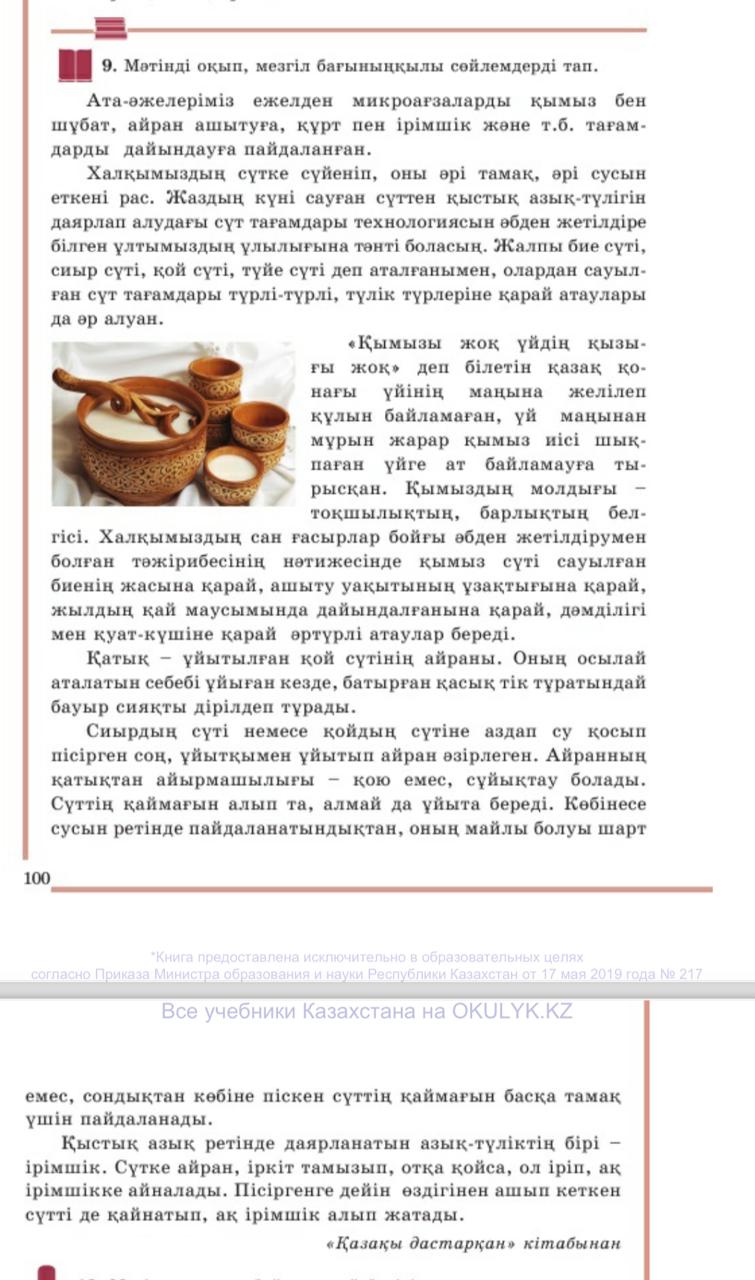Мәтіннің мазмұнына сай қонақтарға қымыз ұсыну Топпен жұмыс 11-тапсырма 1-топ Оқылым мәтініне жоспар құрады 2-топ Мәтіндегі ойды аяқтайды (Мысалы Ұн өнімдері, ет өнімдерін қалай алады) Сергіту сәті «Қазақы дастарым» әнін айту https://youtu.be/KOe7KZOYmBs?si=iplHDq6hnhBF3sYa «Артық болмас білгенің» мәліметтерді оқыту