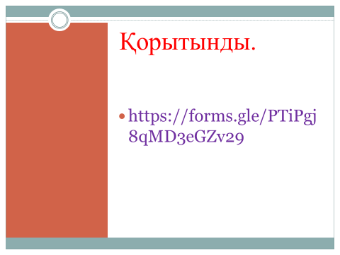 Қорытынды. Гугл форма арқылы сабақты қорытып тест алу. |