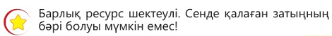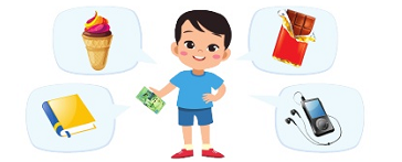 Суреттердегі тұтынатын заттарды атайды. Олардың тұрмыста не үшін қажет екенін зерттейді. Адамдар қажетті заттарды сатып алу үшін қаржыны қайдан алатынын анықтайды. Сиқыршыға өзіне қажетті (өзің қалайтын) 10 затты жазады. Сергіту сәтін іс-қимылмен көрсетеді. Суреттерге қарап, сұрақтарға жауап береді, өз ойларын айтады. Сатып алатын затты таңдауға байланысты өмірде кездесетін жағдайды достарыңмен бірге ойын түрінде көрсетеді. |