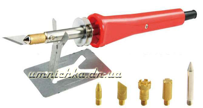 Ағашты күйдіріп өрнектеу электр бізбен жасалады . Ондай біздер арнаулы дүкендерде сатылады . Тіпті оны қолдан жасап алуға болады Біздің бөлшектеріне 127 в - тан ә в – қа дейін төмендетілетін трансформатор кіреді . Тұтыну қуаты 20 вт шамасында . Негізгі жұмысты тұтқа ұшындағы металл электрод атқарады . Күйдіру жиектік , сызықшалы және нүктелік әдістер деп үш топқа бөлінеді . Жиектік әдісте күйдіріліп жасалған өрнек бұйым шетін қуалай жолақ немесе таспа түрінде орналасады . Жұмыс қарапайым электр күйдіргіш бізімен ағаш шетін айналдыра күйдіру арқылы орындалады . Күйдіргіш біз әртүрлі пішінді (иілген , түзу ) болуы мүмкін : мысалы , сегіз тәрізді , Z тәрізді немесе Y әріпі тәрізді . Осындай пішіндерді пайдалану арқылы өрнектер жасауға болады . Көбіне дайын бұйымдарды осылай әшекейлейді . Сызықшалы әдісте сурет бетіне электр күйдіргішпен жылдам қозғалыстар жасау арқылы сызықшалар түсіреді ( сызықшалар қаншалықты қысқа болса , түсі де қанық болады ) . Нүктелік әдісте нүктелерді үлкенді кішілі , терең - таяз етіп күйдіріп , ағаштың ақ жерлерін қарайған суреттерге айналдырып , бейнелеу . Солғын түс беру үшін ағаш бетіне электр күйдіргіштің бізін сәл ғана тигізіп өтеді . Негізінен , барлық күйдіру жұмыстары осы әдіспен орындалады . Ағашты күйдіріп өрнектеу аспапбымен жұмыс кезіндегі қауіпсіздік ережелері .