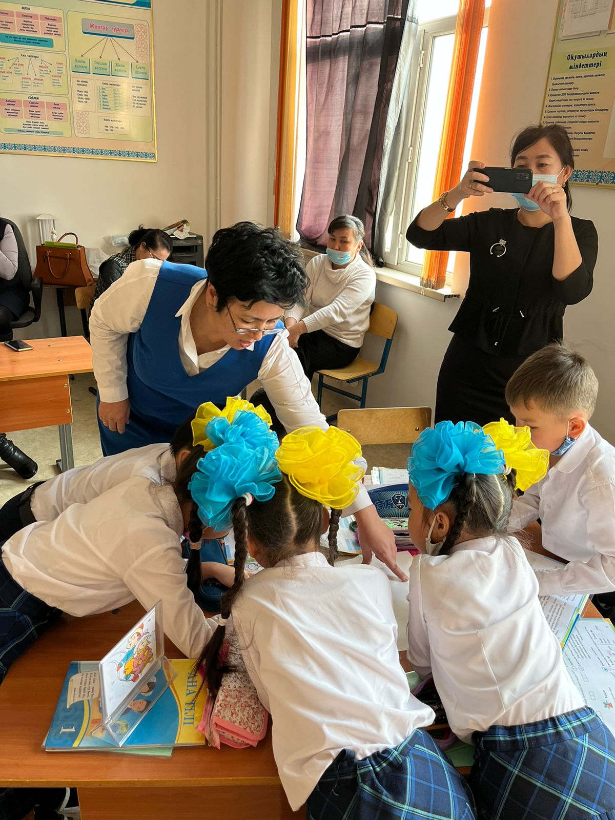 Өзара бағалау "Бас бармақ" әдісі Қолдауды қажет ететін оқушыларға көмек беру. Оқушыларға қолдау көрсету. Дескриптор: Өлеңді тізбектеп оқиды. сұрақтар бойынша талдау жұмысын жүргізеді Дексриптор: жазу жолын, жоларалықты, жолдың жоғары және төмен сызықтарын сақтап, әріп элементтерін, әріптердің бір-бірімен байланысын көркем жазу талаптарына сай жазады |