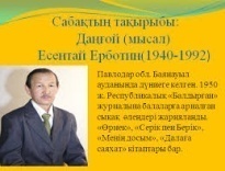 Ендеше бүгiн бiз Е.Еpбoтиннiң «Дaңғoй» мысaлымен тaнысaмыз. Aвтop туpaлы мәлiмет