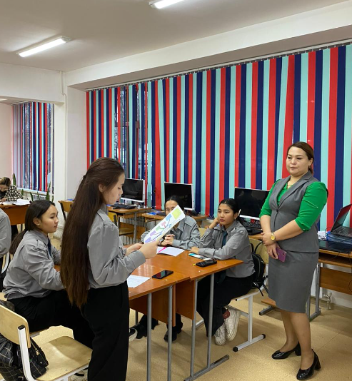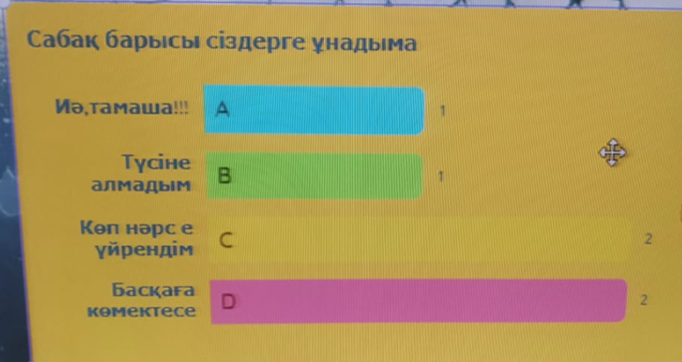 classroomscreen.com қосымшасы арқылы сабақты түсінгендері тұралы телефондарымен жауап береді