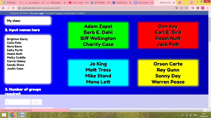 Сәлемдесу, оқушыларды түгелдеу. «Өзіме, көршіме» әдісі арқылы оқушыларда психологиялық ахуал қалыптастыру. Оқушылар шеңбер болып тұрып сағат тілі бағытында алдымен өзіне, сосын көршісіне береді. Соңында өзінде қалған парақшадағы тілек сөзді оқиды. Топқа бөлу Classtools.net платформасында екі топқа бөлу
