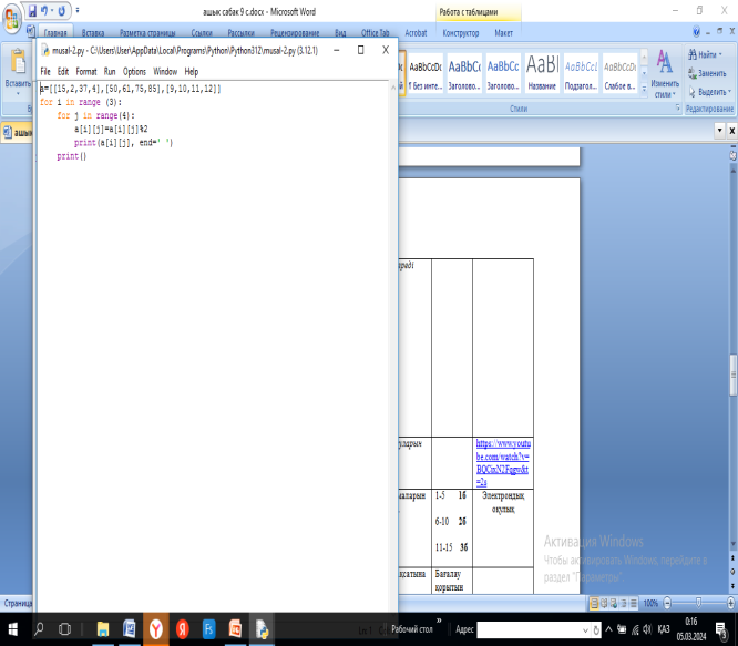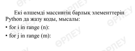 9.3.3.2 екіөлшемді массивтер пайдаланып Python программалау тілінде программаларды жасау; |