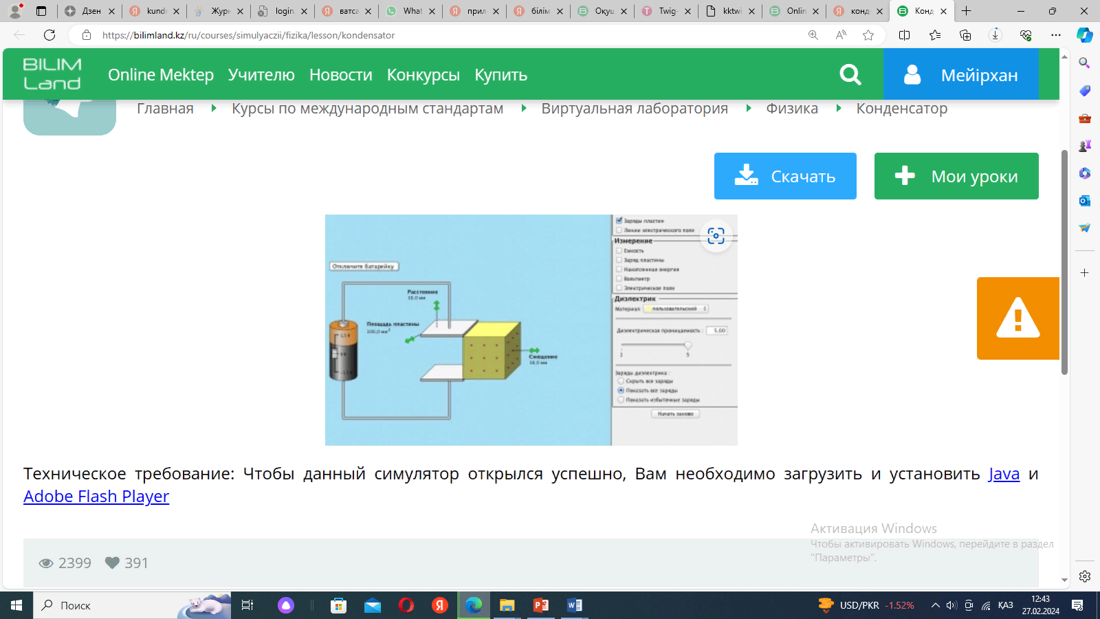 Конденсатор - виртуальная лаборатория, физика онлайн-урок на bilimland.kz