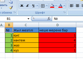 анықтаңдар. ДЕСКРИПТОР - Ұяшықтарды бояу; - Жыл мезгілдерін, сол мезгілдегі мереке -күндерін енгізу. -Жылдың қай мезгілінде демалыстың көп екенін анықтау «Бағалау парағы» арқылы бағаланады ТАПСЫРМА Мына кестені толтыра отырып сабақтың мазмұны бойынша қорытынды шығар.