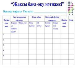 Төмендегі бос ұяшыққа сабақ туралы өз пікіріңізді жазыңыз. Сол ұяшықтағы Сіздің сабағыңыздың тақырыбына сәйкес келетін сұрақтарға жауап беріңіз. |