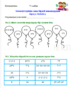 №71 сабақ. Элементтерінің саны бірдей жиындардың бірігуі. Көбейту |