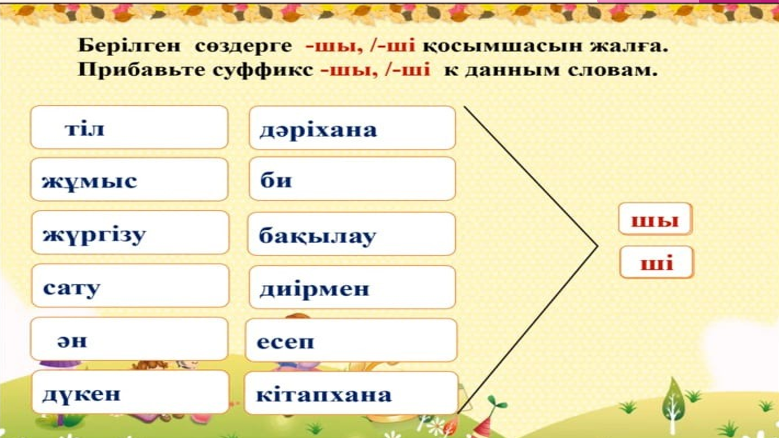 ЖИ арқылы автор өлеңін оқиды Оқиық Айтылым 2-тапсырма Өлеңді түсініп оқы. Есте сақта! Жұрнақтың дұрыс жагғануын түсіндіреді