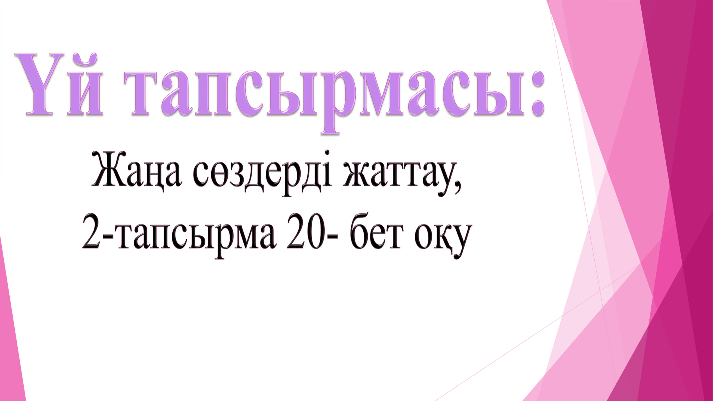 Үй тапсырмасын беру : 2-тапсырма,20-бет |