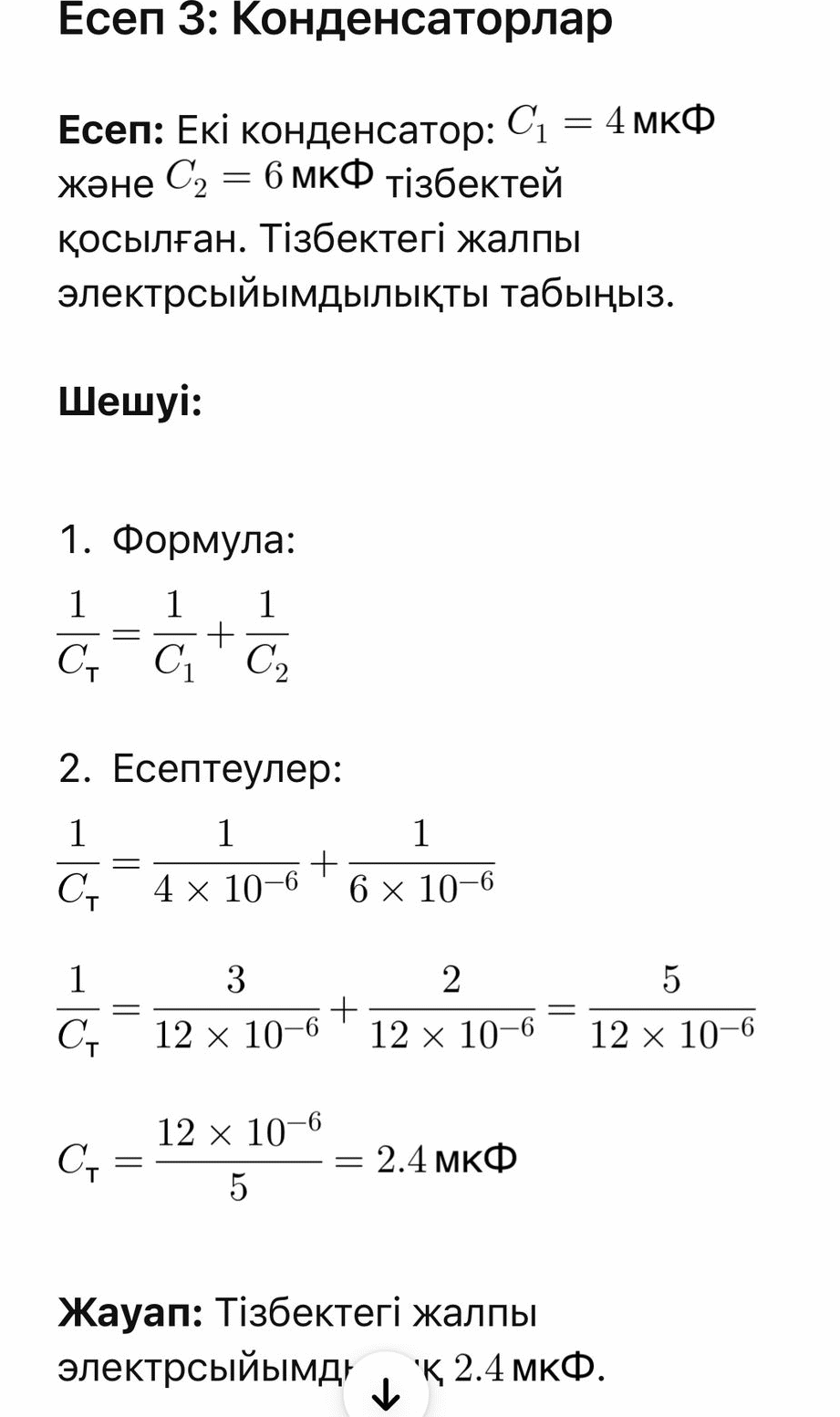 a) Вольт b) Ом c) Фарад (Ф) 3. Конденсатордың негізгі қызметі қандай?