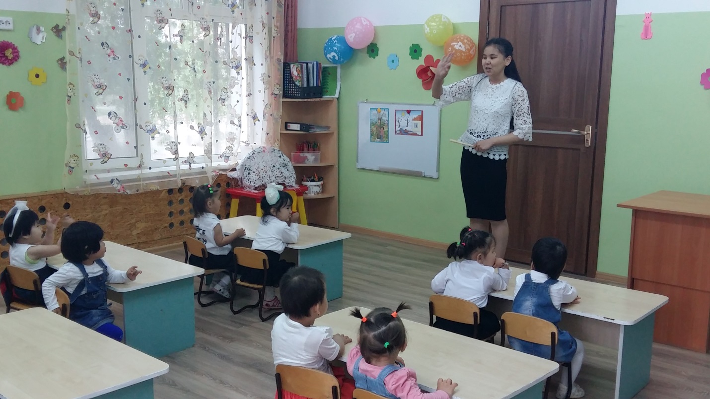 Әдіс – тәсілдері: қайталау, сұрақ – жауап, көрсету, мадақтау.