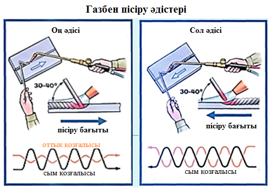 Газбен пісірудің негізінен екі түрі «сол» және «оң» әдістері болады.