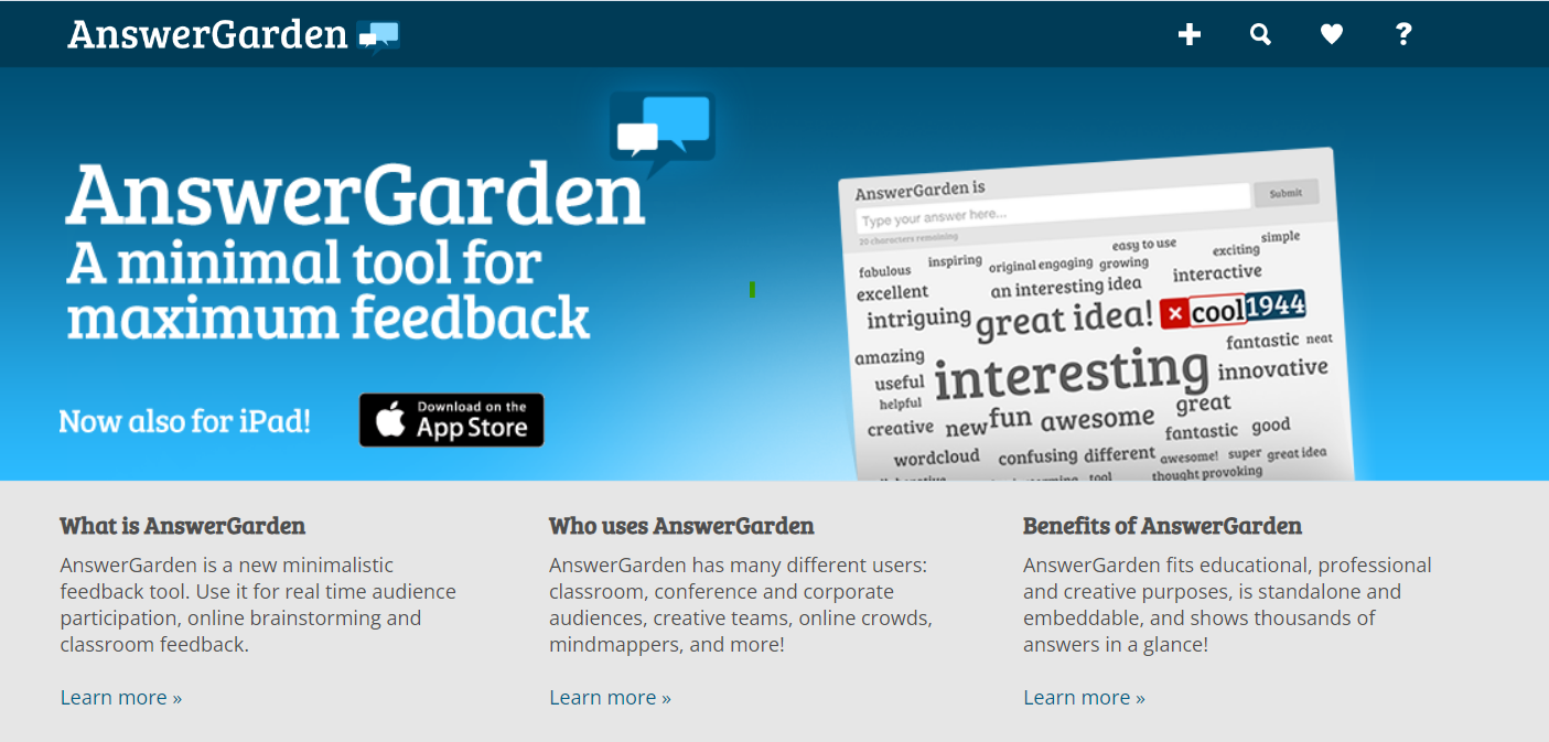 Сабақтағы іс-әрекетке байланысты кері байланыс: AnswerGarden-нің негізгі қолдану жолдары: