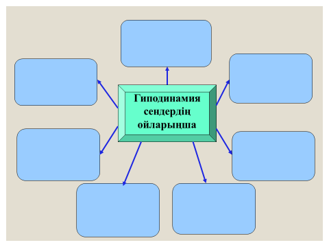 Бағалау критерийі: -термин сөздерді зерделейді және гиподинамия туралы ой тұжырымдайды; (Әр оқушы өз ойымен бөліседі. Бір-бірінің пікірін толықтырып, пікір алмасады, берілген тапсырманы бағалау критерийі бойынша орындайды;) |