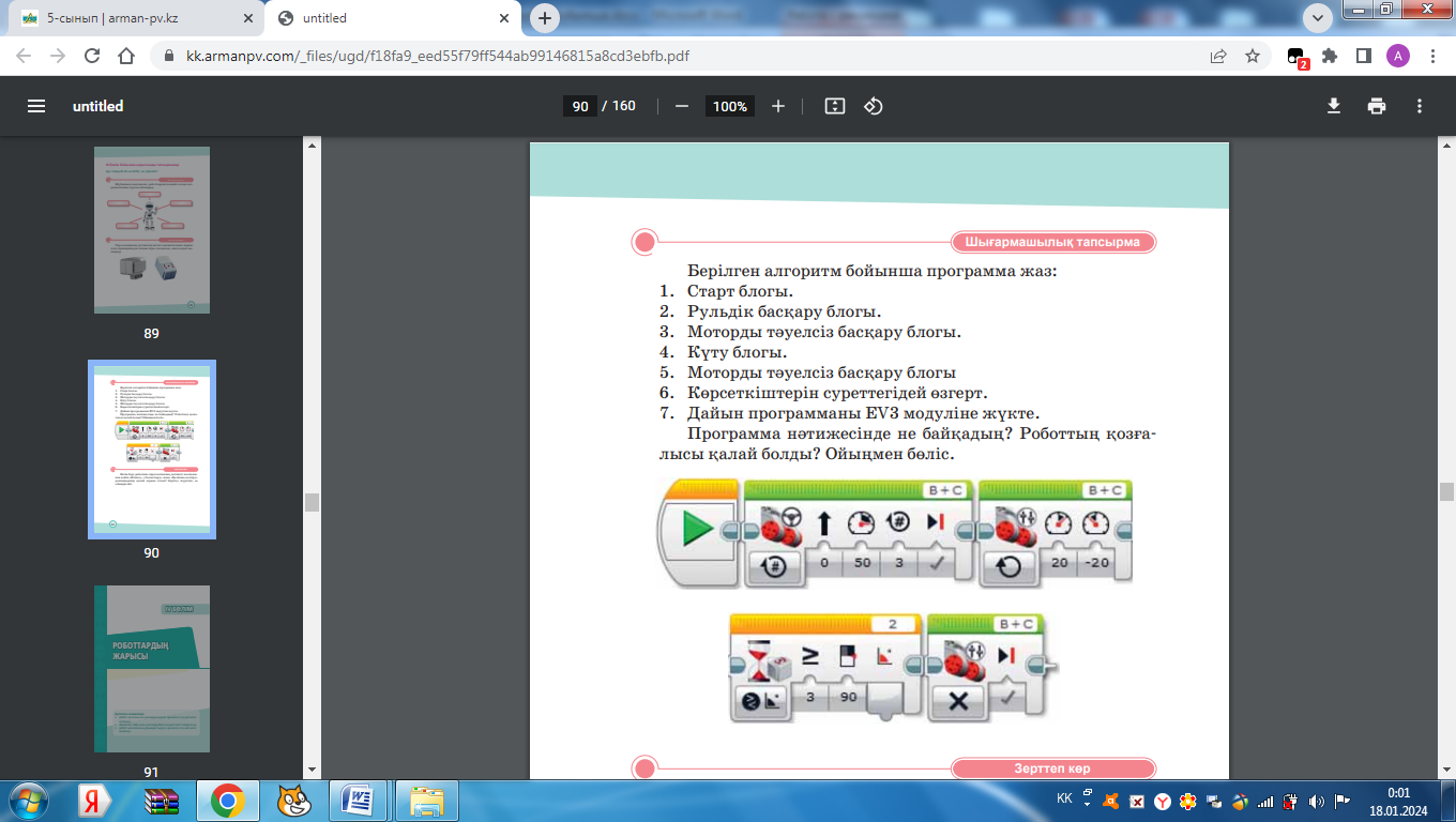 Роботты тұрған орнынан 900-қа бұратын программа блоктарын құрастырады |